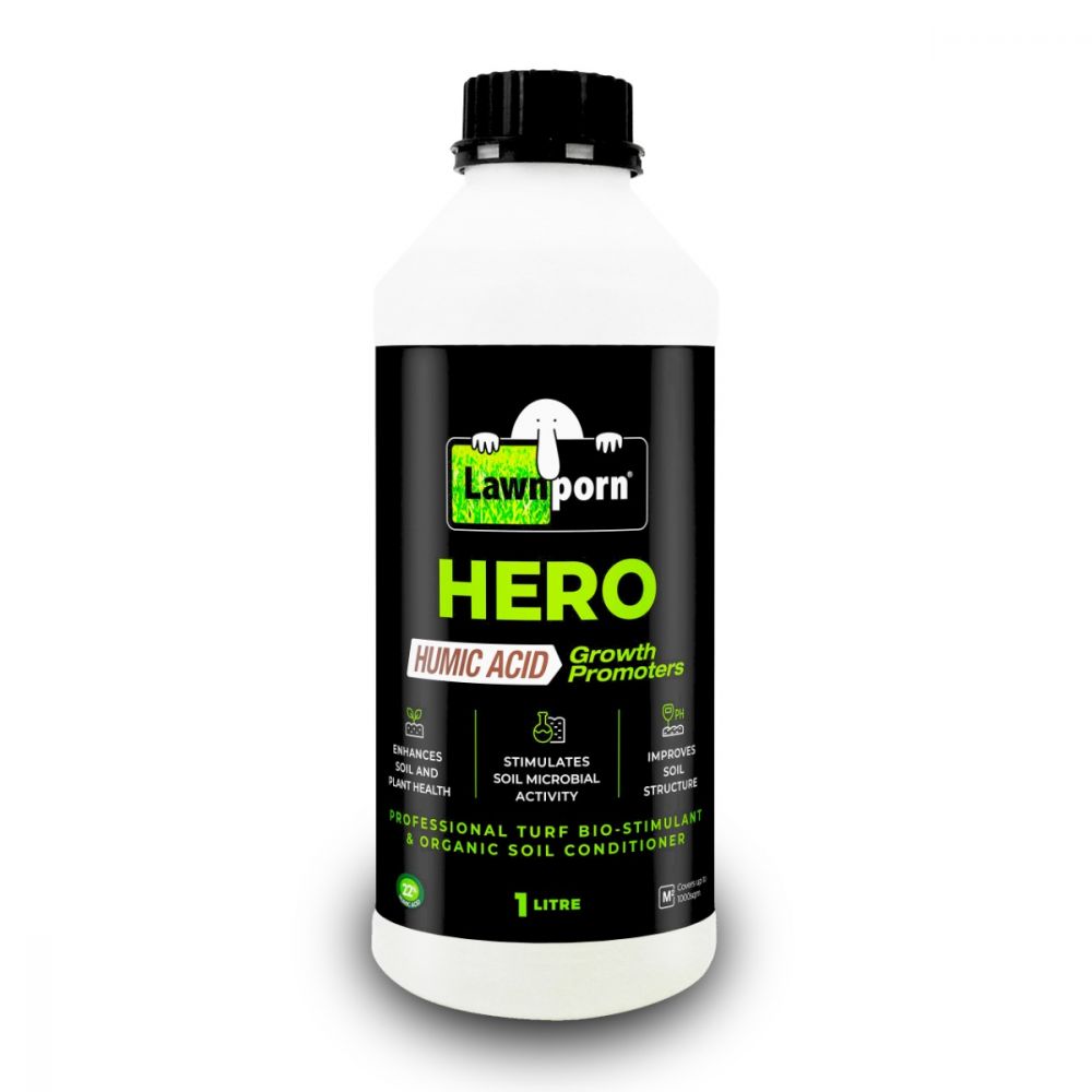 Lawnporn Hero is our new Humic Acid. Hero is an organic product which promotes soil structure and plant health, stimulates microbial activity and locks in soil based nutrients making it available to the plant when needed most.